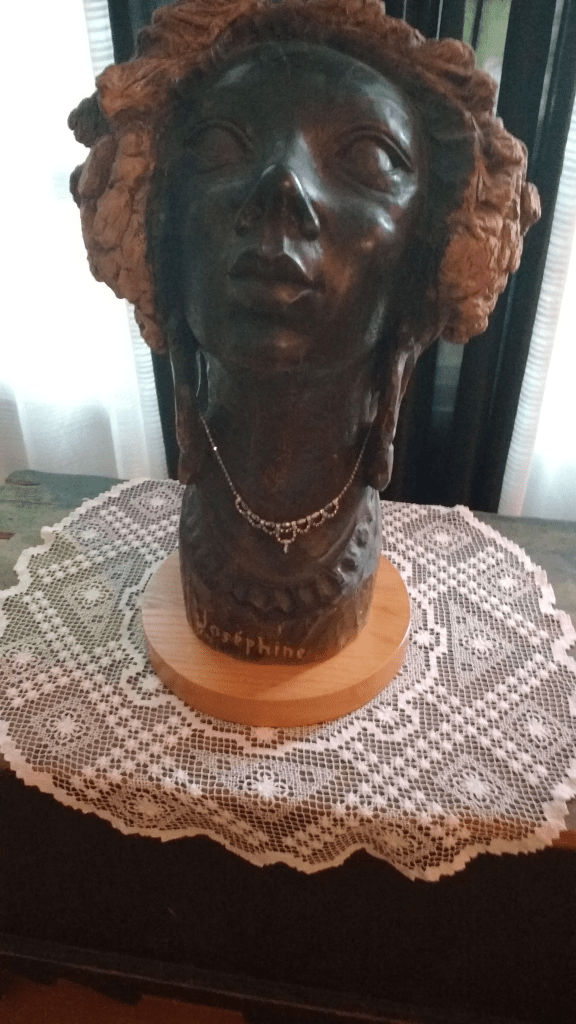La nièce avait demandé une sculpture à son oncle Jean-Julien, le jeune frère de Médard. La nièce avait une immense admiration pour Josephine Baker. Et Jean-Julien, pour l’amour de sa nièce, d’une pièce de noyer noir, tira une magnifique Josephine.