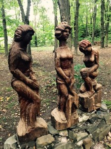 Les 3 grâces, sculptées dans une pièce de quai ramassée sur la grève