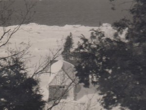 Chalet du sud vu d’en haut de la falaise, hiver 1948