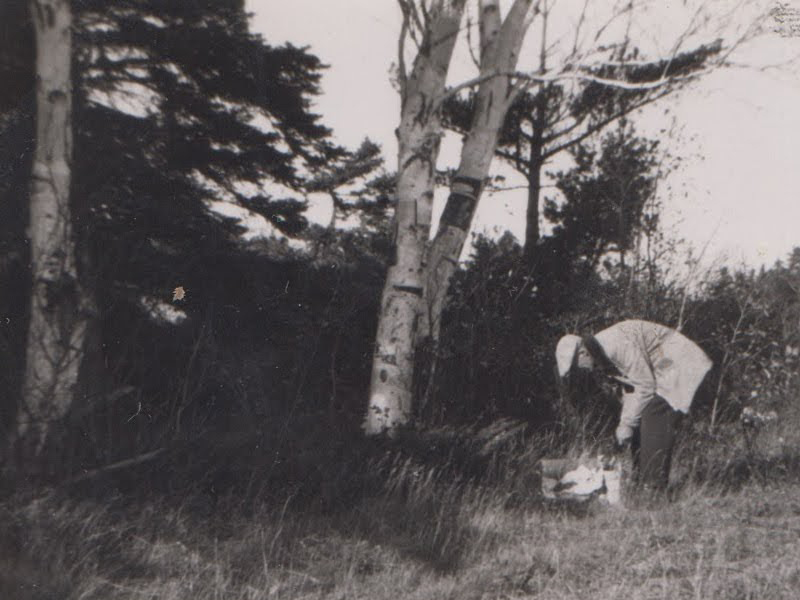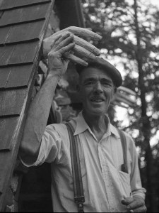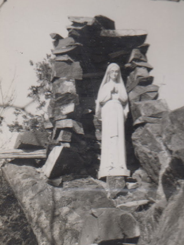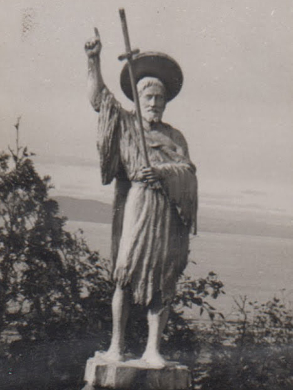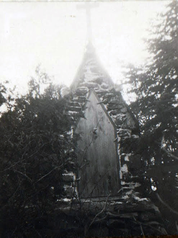 Médard devant sa chapelle sur son Rocher, fin des années 40