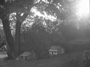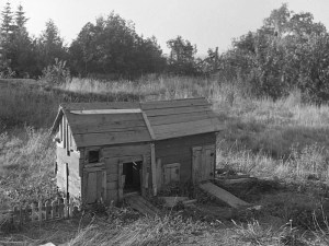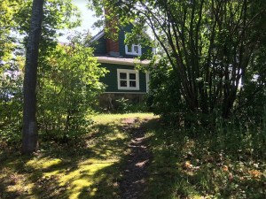 Derrière la maison commence l’espace privé. D’abord un plateau en pente douce qui va de la route jusqu’au bord de la falaise dominant le fleuve. La famille de Médard et Rose y maintiendra au fil des années diverses dépendances: grange ou étable, jardin, arbres fruitiers, etc., bref le lot de l’immense majorité des habitations campagnarde de l’époque. Et tout au bout du jardin, au sommet de la falaise, le mythique Rocher de Médard.