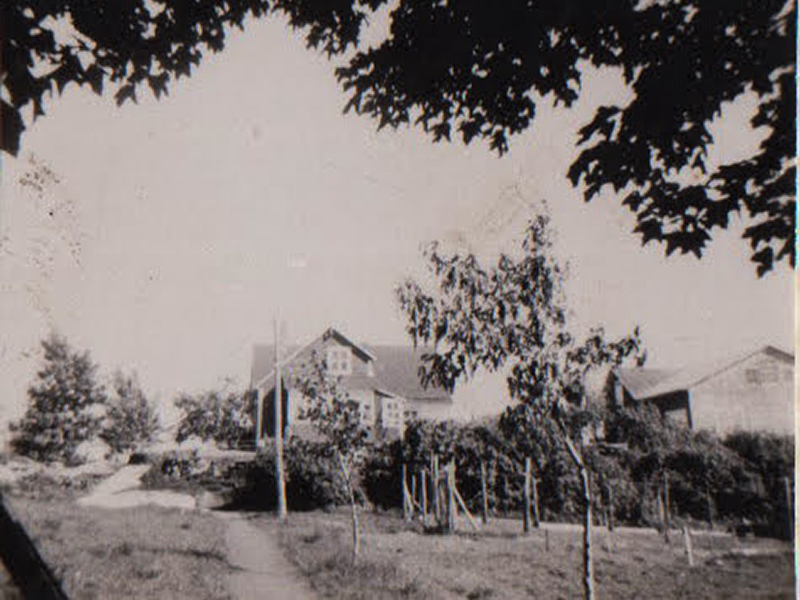 Maison, arbres fruitiers et atelier (à droite) vu du Rpcher